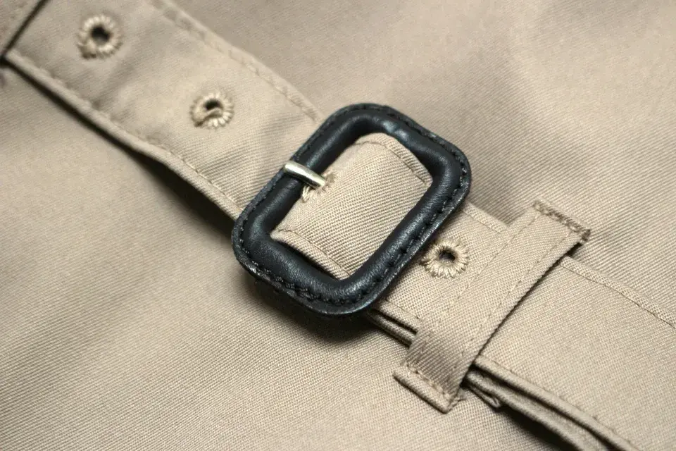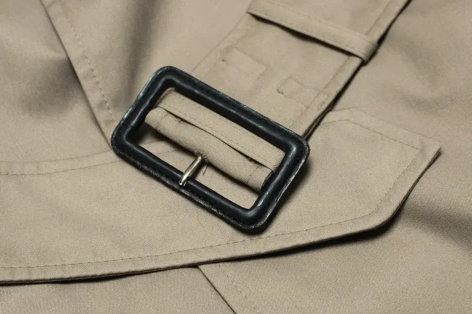 Horn buttons with matching waist belt with "D" rings & buckled cuffs