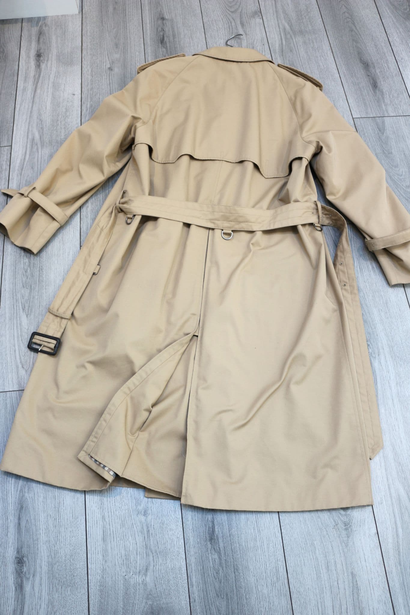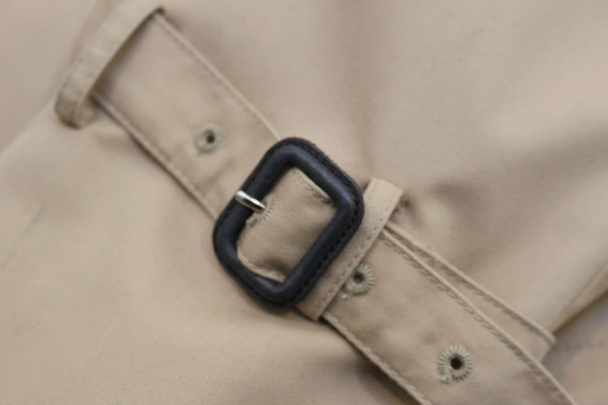 Very rare double breasted showerproof cotton twill blend trench coat in a well sought after dark beige