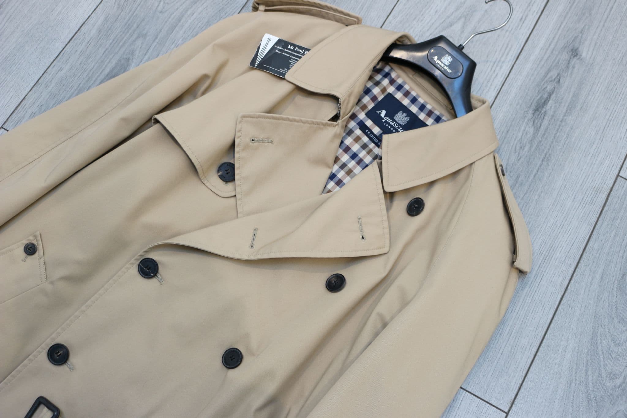 AQUASCUTUM Dark Beige Cotton Blend KINGSGATE Trench Coat