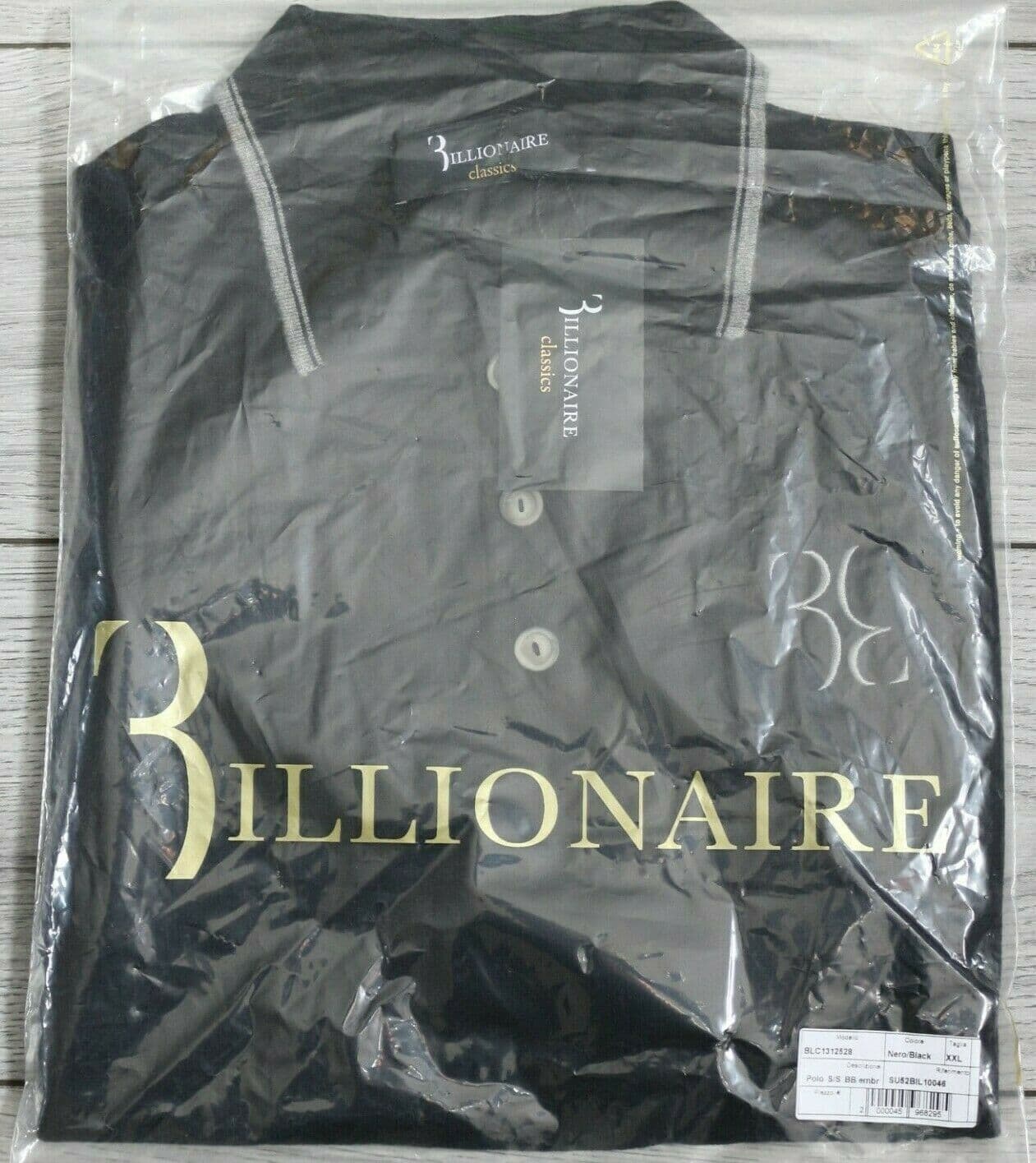 BILLIONAIRE Black Knitted Embroidered Logo SS Polo Shirt