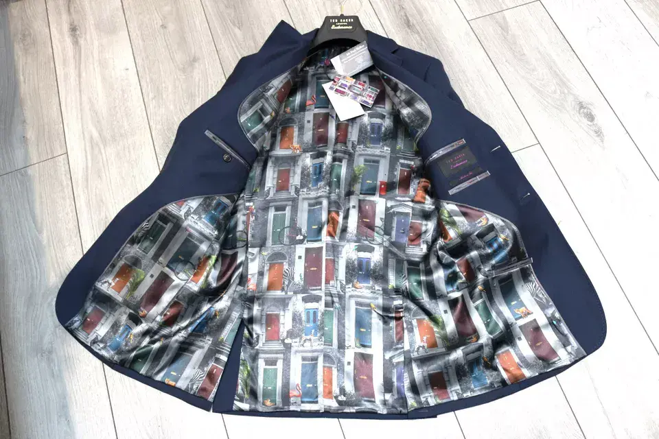 TED BAKER Navy Textured Birdseye Italian Wool Jacket Blazer